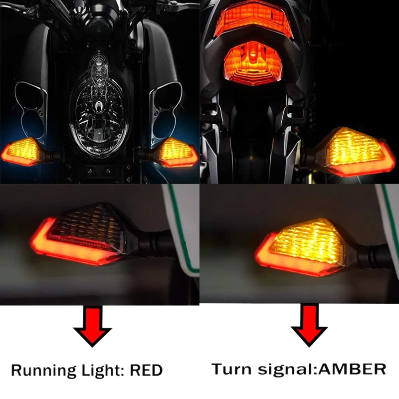 Яркий 2-функциональный свет: это поворотники с ходовым светом, супер яркий с 22 высококачественными светодиодами, энергосберегающая лампа 12 В для долгосрочного использования, универсальный, подходит для 10 мм винтового двигателя, лайков Yamaha, скутера, крейсера, Honda, Kawasaki, BMW, Suzuki, внедорожника