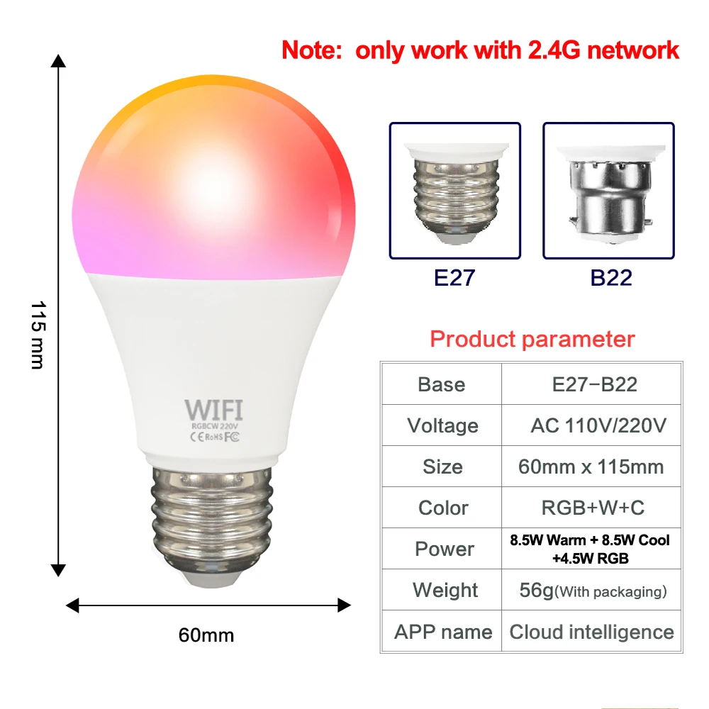 Есть 3 шага, чтобы начать вашу умную жизнь. Отсканируйте qr-код, чтобы загрузить приложение, установите основание лампы и Используйте приложение для управления лампочкой Wi-Fi (не требуется концентратор). Подходит для Wi-Fi 2,4 ГГц, но не подходит 5,0 ГГц. Вы можете управлять освещением индивидуально или в групп.