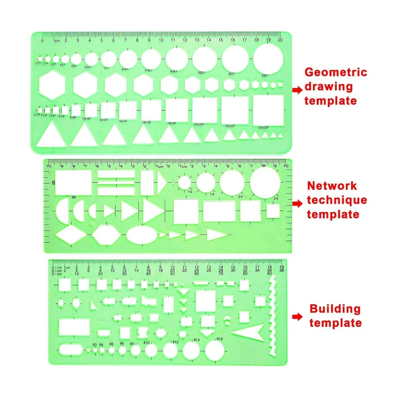 Практичный набор: посылка включает в себя 11 прозрачных зеленых пластиковых геометрических шаблонов различных форм и 1 упаковку полиэтиленовых конвертов на молнии для хранения, очень удобно для повседневного использования и переноски