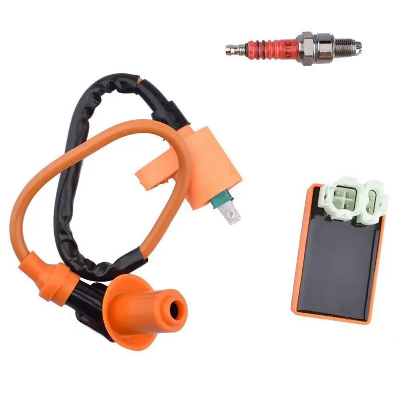 Высокая производительность гоночный катушка зажигания + cdi + Свеча зажигания для gy6 скутер картинг 150cc 125cc 50cc, gy6 139qmb 152qmi 157qmj двигатели, Гонки 3 электроды, свечи зажигания