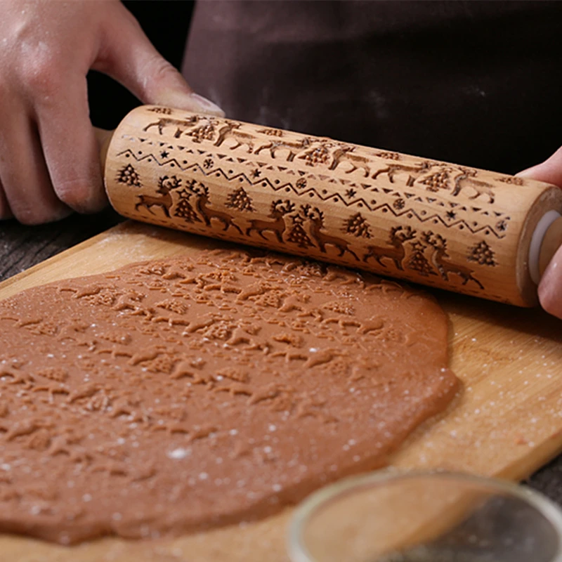 Детские ручные штифты, выгравированные с дизайнерскими узорами, деревянный валик для выпечки, тисненые печенья, кухонные инструменты, рождественский подарок