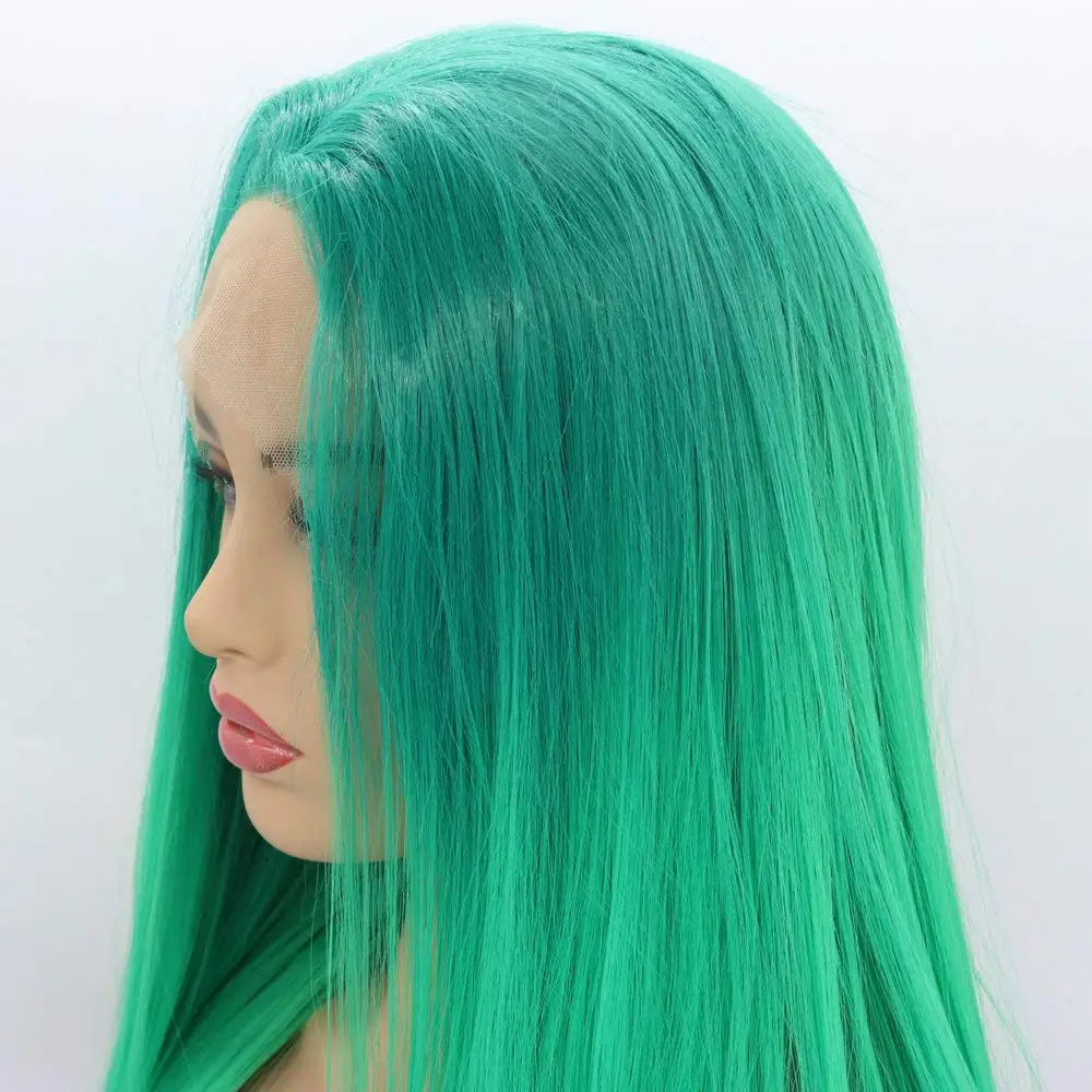 Это дизайнерский дизайн модных атмосферных париков, натуральный цвет свежего зеленого кружеваПередний парик, очень реалистичный, похожий на настоящие волосы парик из синтетического волокна, я надеюсь, вам понравится наш летний крутой модный зеленый парик