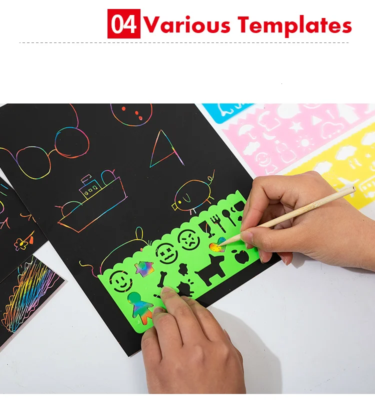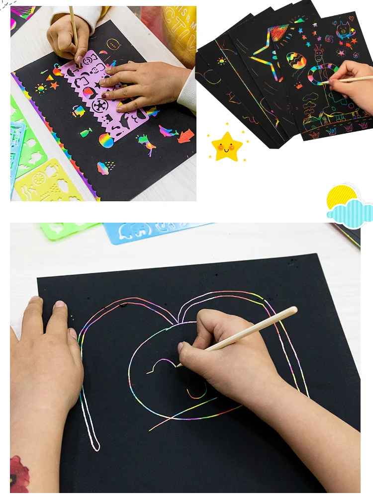 -Название продукта: набор карт волшебного цвета радуги бумага для скретч арта с трафарет для граффити палочками для рисования «сделай сам», художественная живопись, Обучающие игрушки в подарок