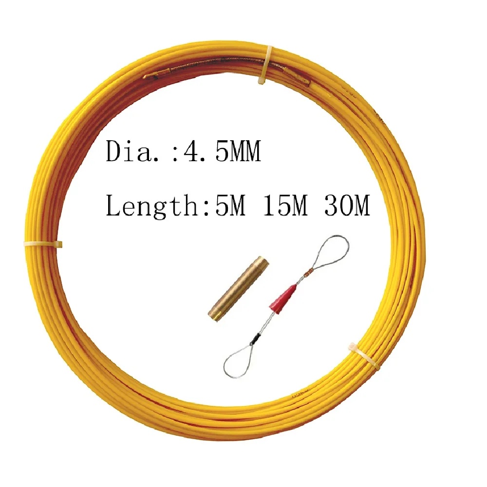 Стекловолокно воздуховод роддер справочные данные: Канал стержень Диаметр: 4,5 мм. (3-16 мм на заказ) Ядро рыбной ленты из стекловолокна: 3 мм Длина рыболовной ленты: 5 м, 15 м, 30 м. (Другая длина по индивидуальному заказу) Допуск измерения: +/-0,10 мм Маркеры: с метками метров Материалы проводного трубопровода: Стекловолоконный трубопровод + композитный материал куртка Материалы наконечников: латунь Цвет стержня: желтый. (Другие цвета с большим количеством могут быть настроены) Медная проволока: у рыбной ленты нет медной проволоки. (Но это настраивается. Как правило, с 0,5 мм диаметр)