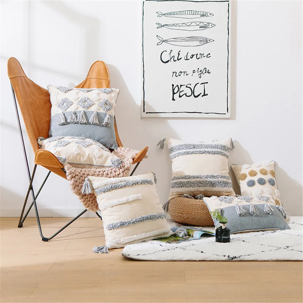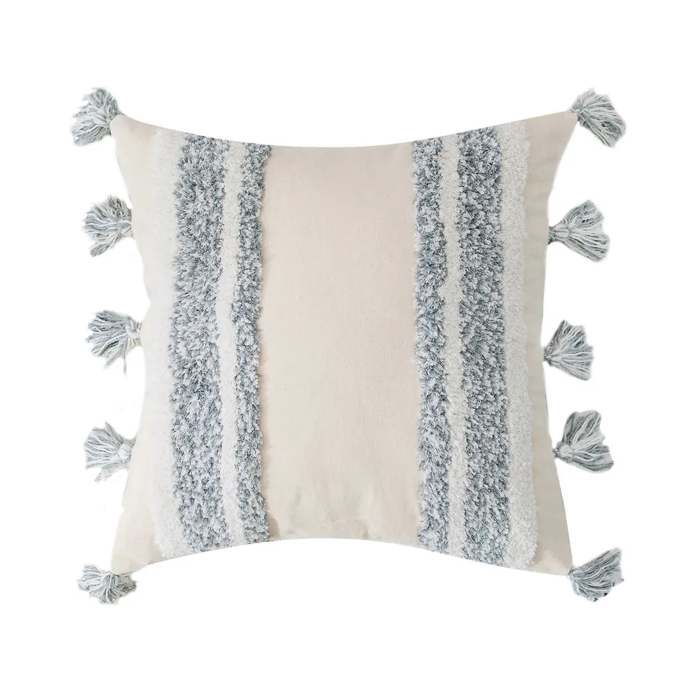 Tasseled Cushion Covers Embroidered Decorative Square Pillow Case Pillowcases Hand-woven Cotton Embroidery With Invisible Zipper