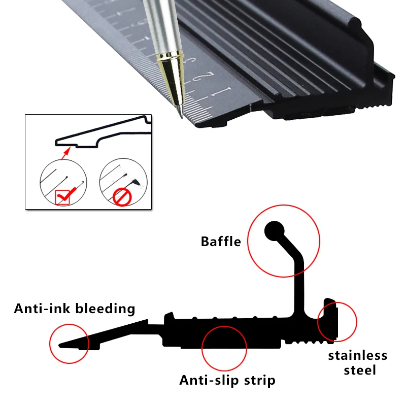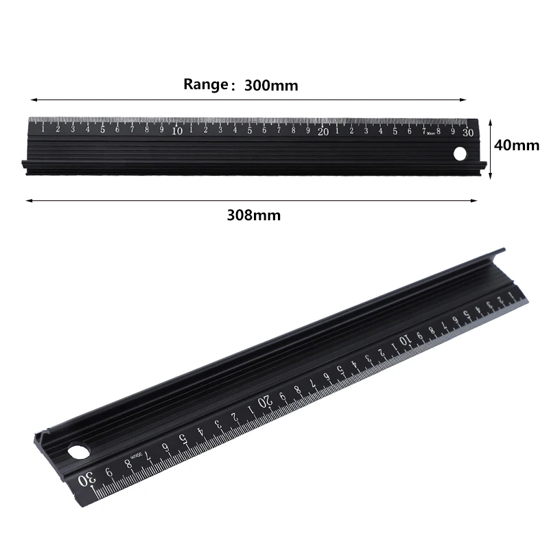 Деревообрабатывающая линейка изготовлена из алюминиевого сплава со стальной режущей линией для длительного использования.
