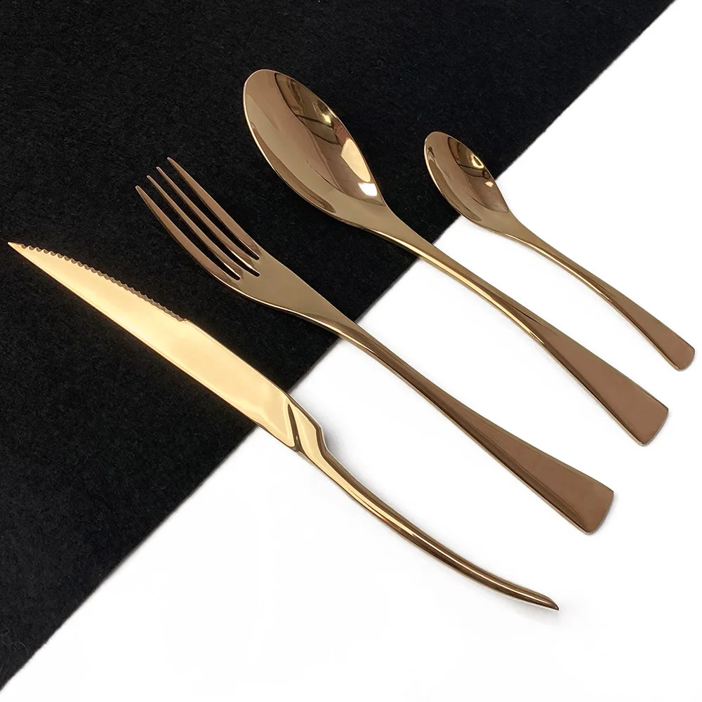 Всего 24 штуки в наборе, нож для стейка, обеденная ложка, чайная ложка, по 6 штук в каждой.