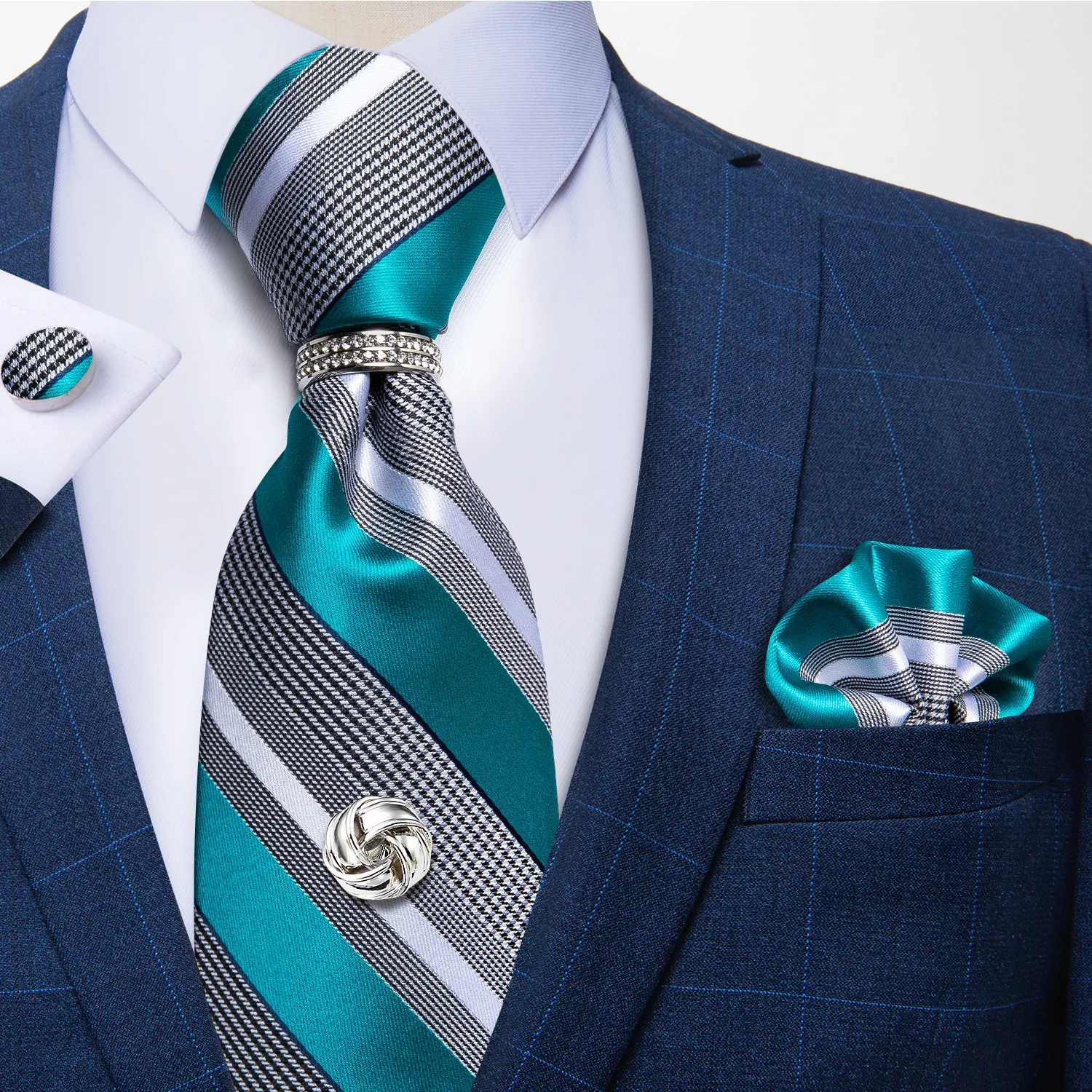 Роскошный дизайн, бирюзовая синяя мужская брошь для галстука, кольцо, карманные Квадратные запонки, набор 8 см, деловой Свадебный галстук для мужчин, подарок, DiBanGu