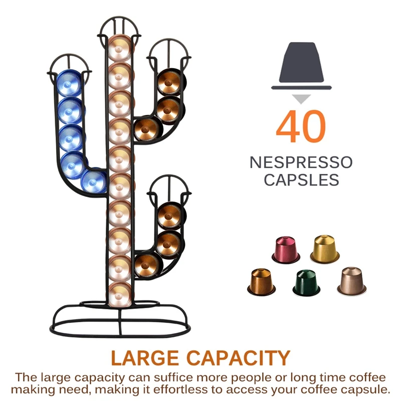 Элегантный: классический черный и простой держатель для кофейных капсул можно разместить на столе в качестве стильного украшения. Особенно его мелкие детали, такие как дизайн в форме кактуса, могут показать его элегантный стиль и привлекательный внешний вид.