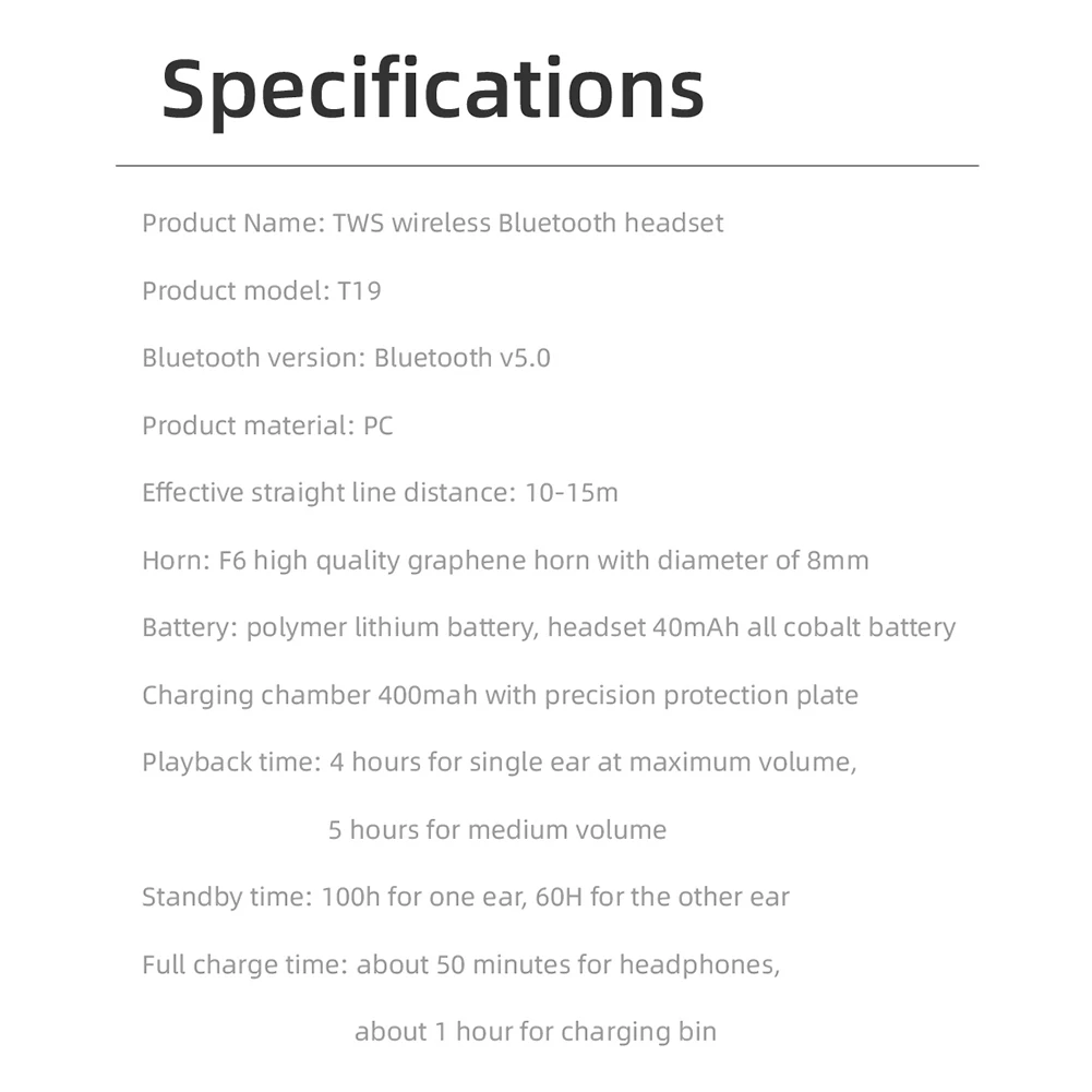 T19 TWS Беспроводные Bluetooth 5,0 мини наушники сенсорные наушники с микрофоном для спортивной музыки