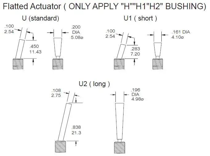 Тип: мини-переключатель с плоской ручкой серии T80-T Стандартная длина плоская ручка (11,43 мм) Модель: T8011-U ON-ON 6Pin DPDT Длинная плоская ручка (21,3 мм) Модель: T8011-U2 ON-ON 6Pin DPDT Монтажный Диаметр: 6,35 мм Тип подключения: Припой Контактная Оценка: 5A @ 125 В переменного тока или 28 В постоянного тока Электрическая жизнь: 50000 делает и ломает циклов при полной нагрузке Контактное сопротивление: 10 МОм макс. начальный @ 2-4 В постоянного тока, 100 мА Сопротивление изоляции: 1000 МОм мин. Диэлектрическая прочность: 1500 В RMS @ уровень моря. Рабочая температура: от-30 °C до 85 °C