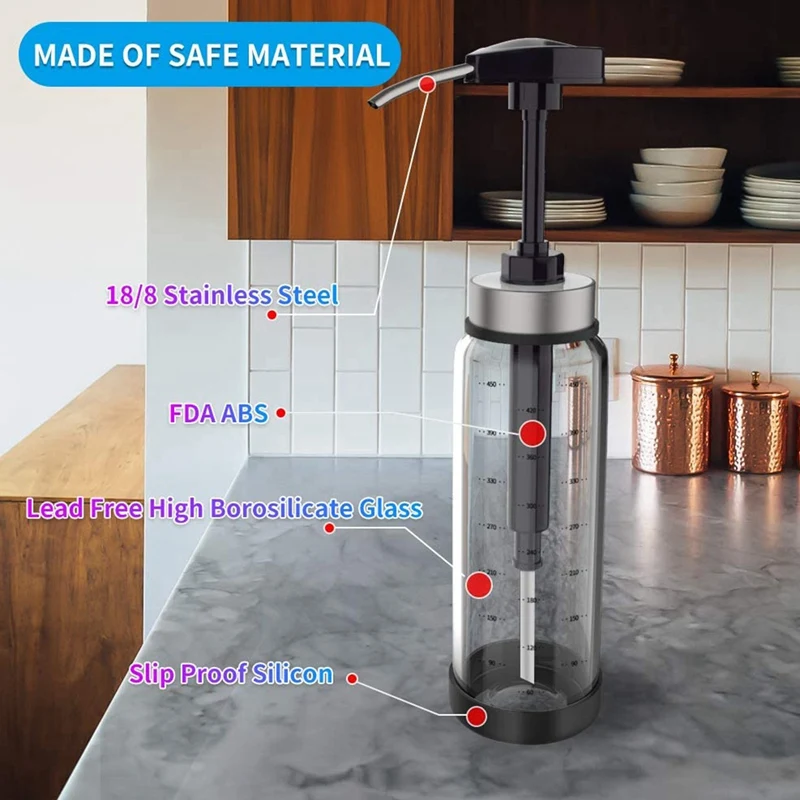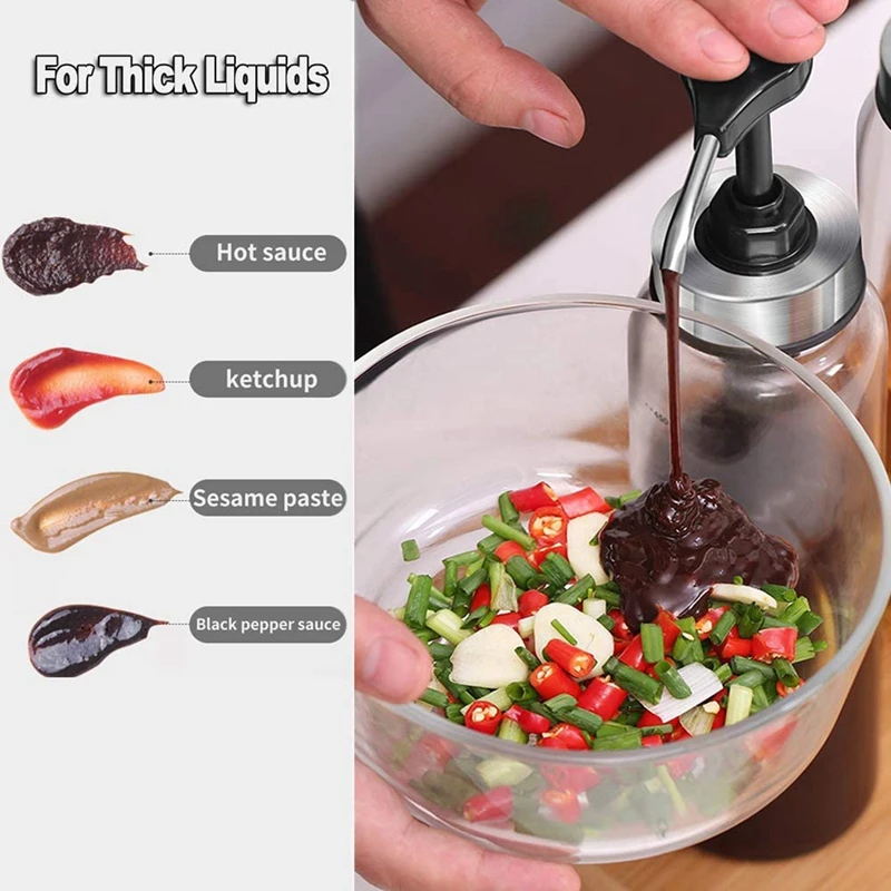 Соус и сироп стеклянная бутылка диспенсер с накачкой: когда вам нужна Толстая жидкость в бутылке соуса, просто нажмите на крепление насоса вместо того, чтобы закончить встряхивание бутылки и взбивать дно в течение смешного времени, прежде чем соус на самом деле выходит.