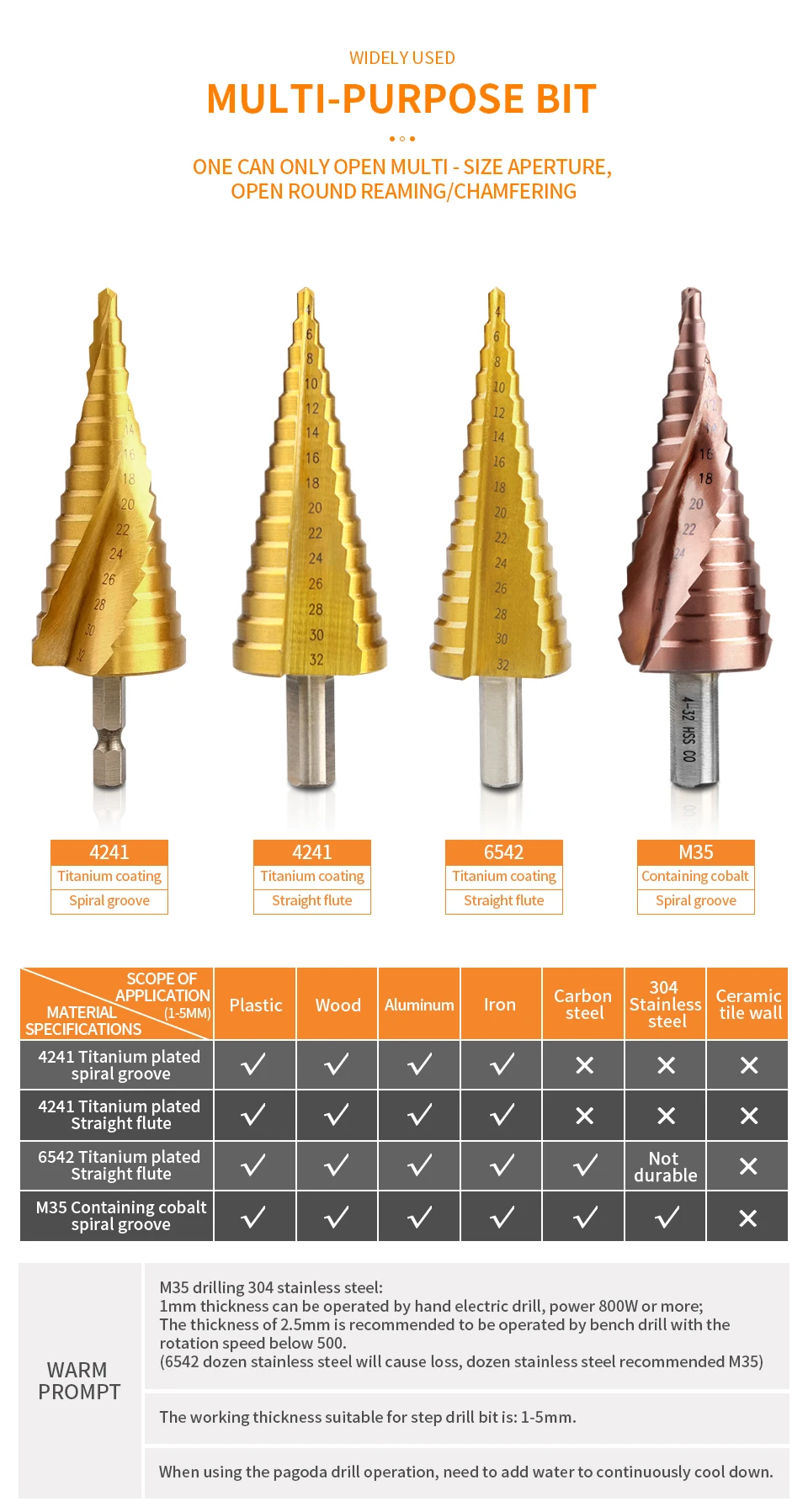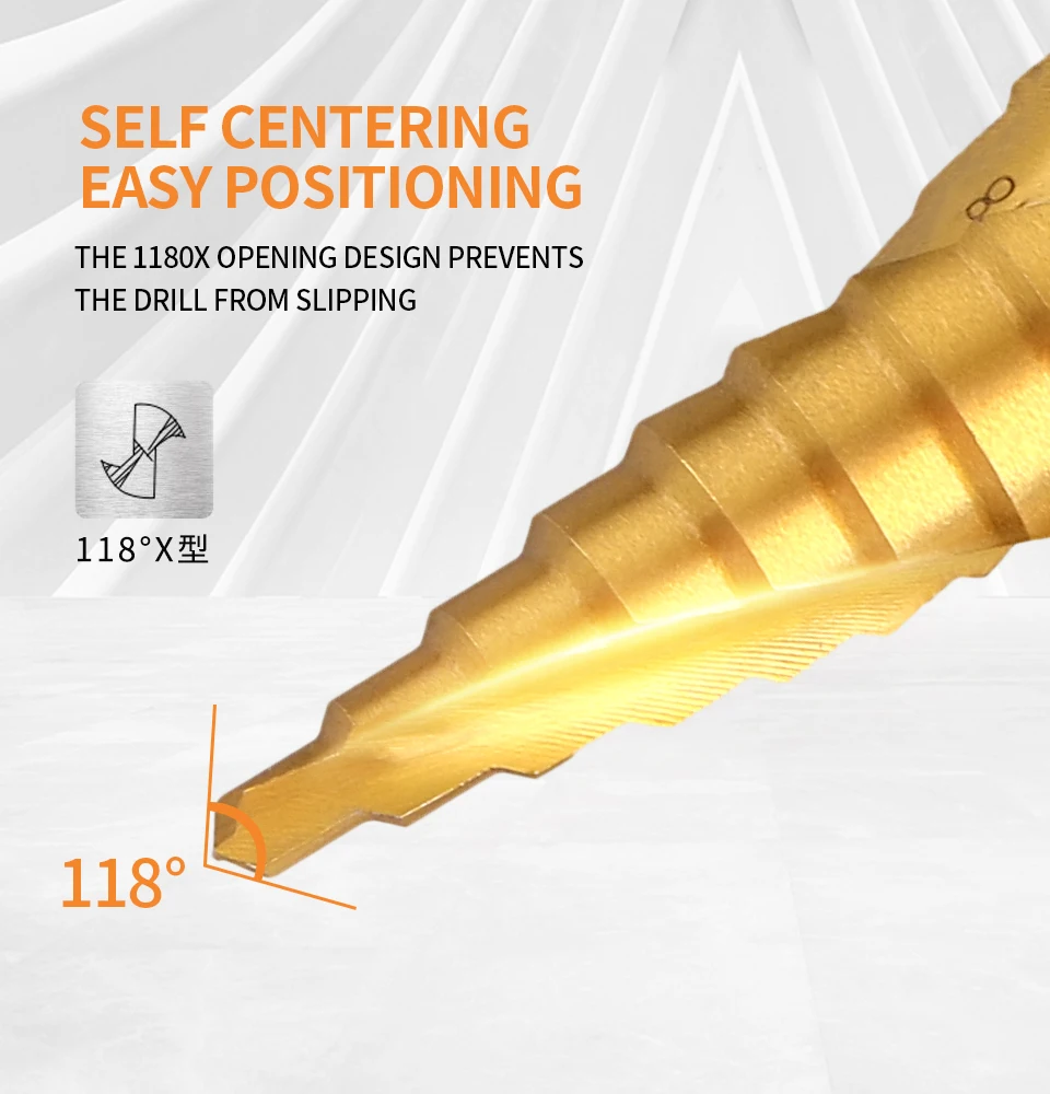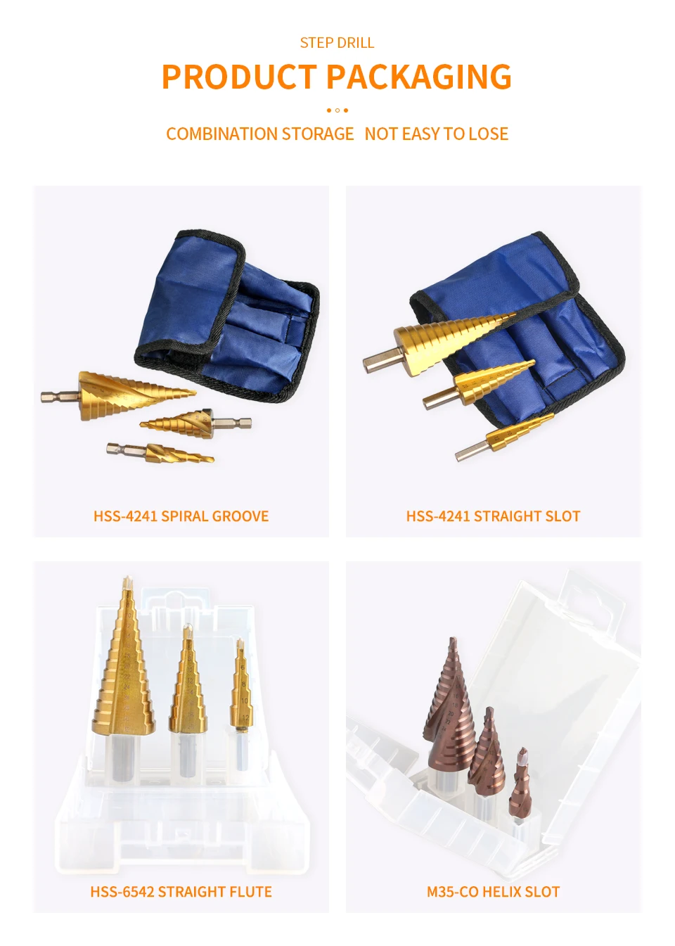 1. Уникальная ступенчатая структура, различные стандартные размеры сверла резьбы диафрагмы, коробка прибыла на лестницу сверла.