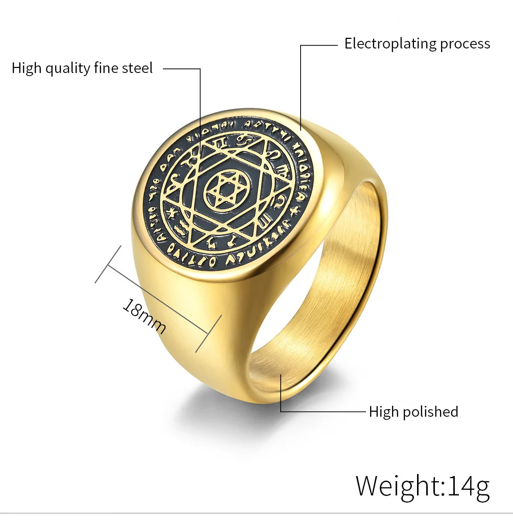 Pentagram of Solomon Rings for Men Patron Saint Ring Archangel Raphael Sigil Divine Healer Stainless Steel Male Jewelry