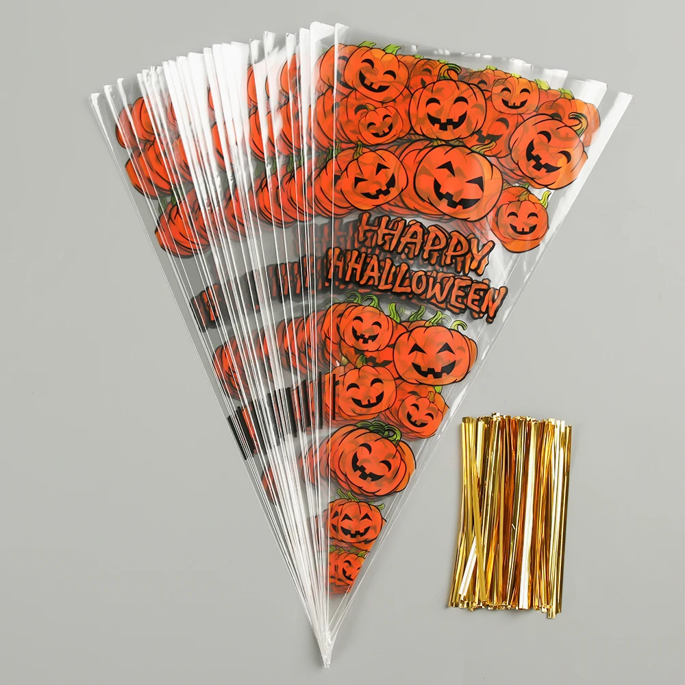 Особенности: -Эти Треугольные сумки изготовлены из OPP, красивые и милые. -Креативный дизайн делает его более популярным для людей. -Эти треугольные мешки для Хэллоуина можно легко открыть или закрыть, разблокировав или закрепив галстуки. -Эти Треугольные сумки для Хэллоуина-это товары для вечеринок на Хэллоуин для упаковки конфет и мини подарочных оберток. -А также подходит для вечеринок, конфет или других подарочных упаковок. Упаковка включает: 50 упаковочных пакетов