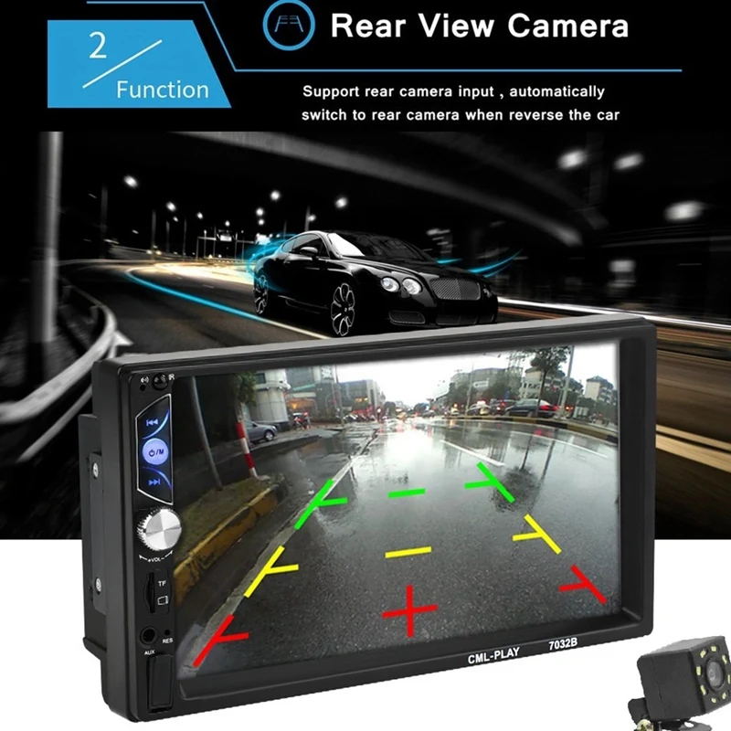 7-дюймовый ЖК-дисплей с высоким разрешением нажмите sn: 2 din стерео sn имеет отзывчивый, мощный и интуитивно понятный пользовательский интерфейс touchsn с высоким разрешением 1024*600. Универсальная камера заднего вида: широкоугольный объектив 170 °, 12 Светодиодный светильник ночного видения, водостойкая камера заднего вида IP68, обеспечивает быструю и безопасную резервную копию, автоматическое переключение на HD вид заднего вида с ночным видением, а также парковку вашего автомобиля