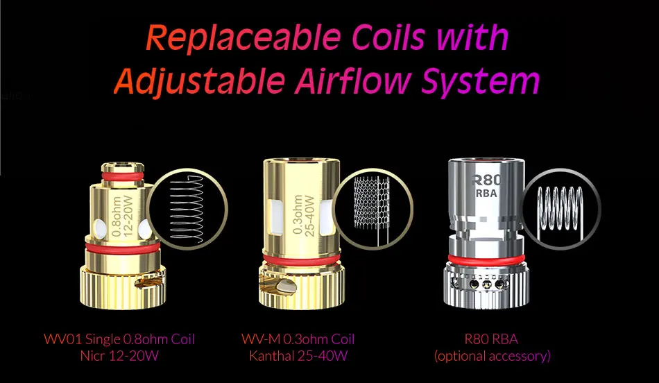 Картридж R40 предназначен для совместимости с модом WISMEC R40 pod. Это ароматизатор. Внутри картриджа находится катушка WV с регулируемой системой воздушного потока. Катушки 0.3ohm и 0.8ohm принесут вам различные впечатления от парения.