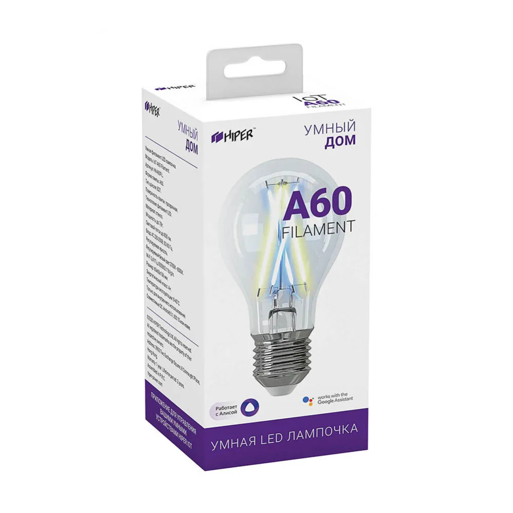 Умная LED лампочка Wi-Fi HIPER IoT A60 Filament, поддерживает удаленное управление через приложение HIPER IoT, предназначена для использования в уже установленных люстрах и светильниках, наделяя их дополнительными функционалом. Полностью имитирует лампу накаливания, сочетая в себе достоинства ламп накаливания и экономичность led ламп.