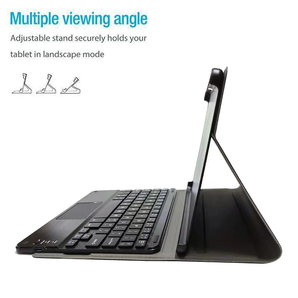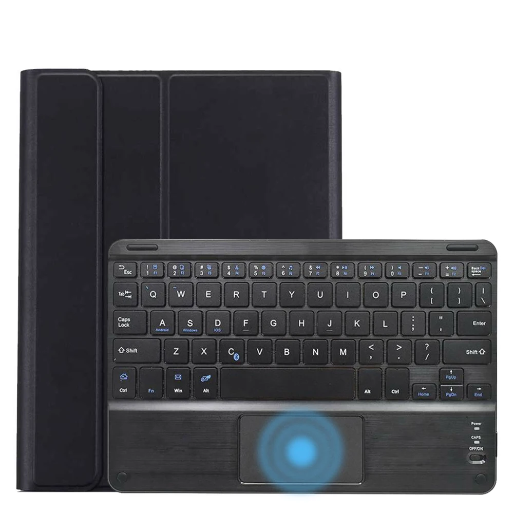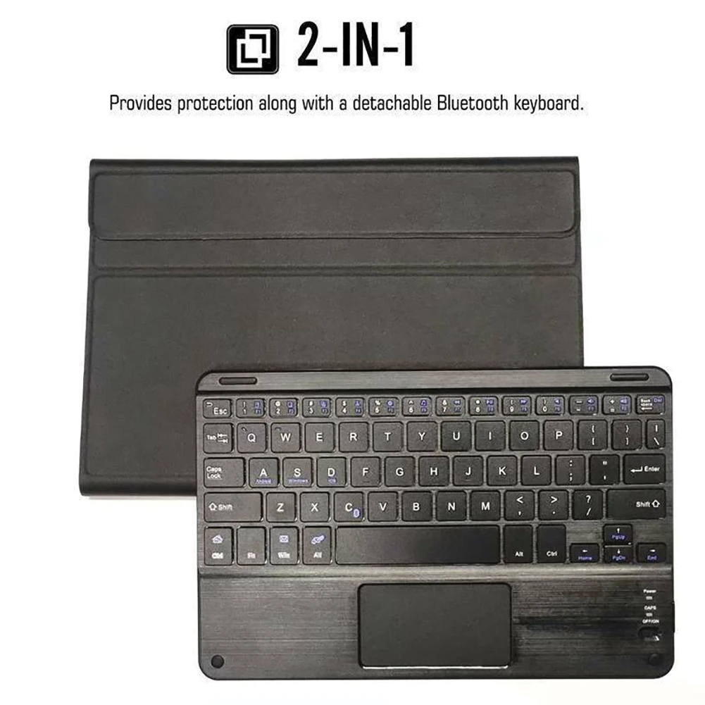 -Клавиатура подключается к планшету через беспроводное соединение, которое можно использовать в защитном чехле или использовать отдельно. Клавиатура съемная.