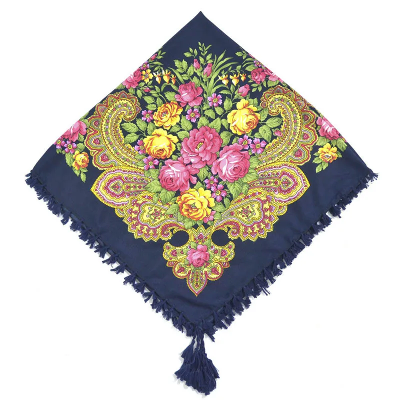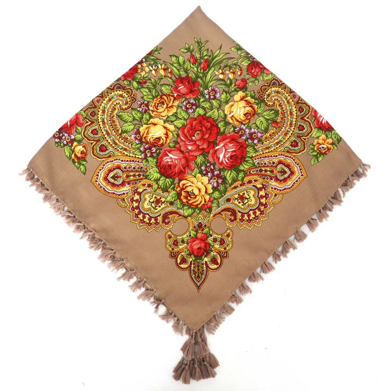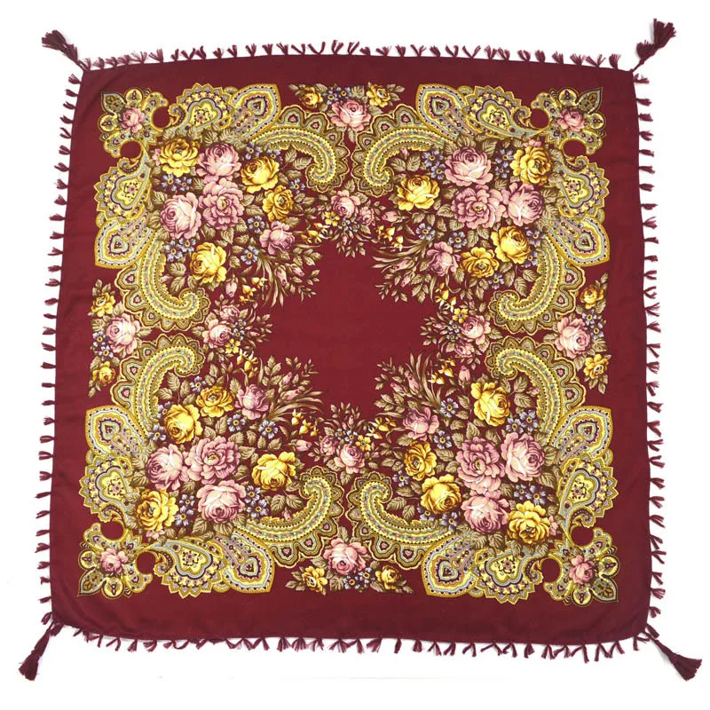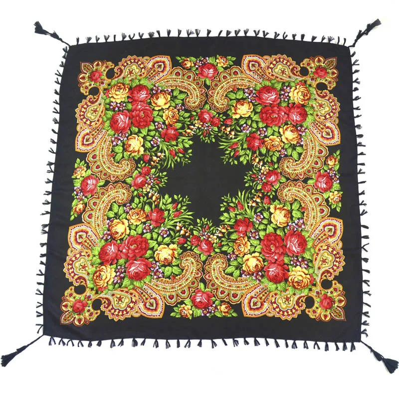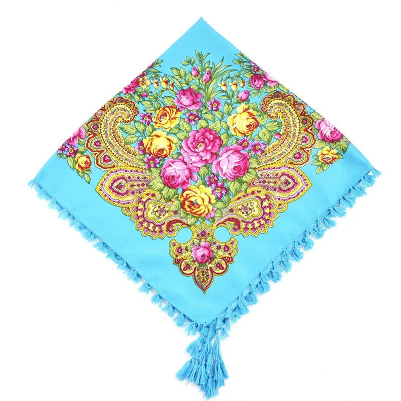 2020 спин кисточки Национальный шарф для женщин с цветочным принтом шали и обертывания шарф в русском стиле квадратная бандана Женская повязка на голову хиджаб