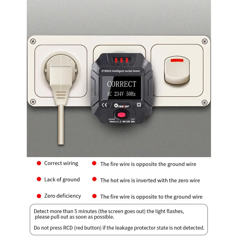 Интеллектуальный тестер гнезда в основном используется для полярного обнаружения проводки розетки и обнаружения утечки. Он может быстро и точно определить проводку розетки. Это интеллектуальный цифровой тестер, который может обнаруживать напряжение и частоту гнезда, и является ли проводка правильной.