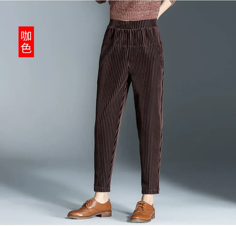 Женские вельветовые брюки с высокой талией на осень и зиму, облегающие брюки длиной до щиколотки DA840
