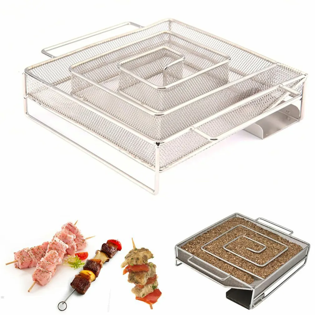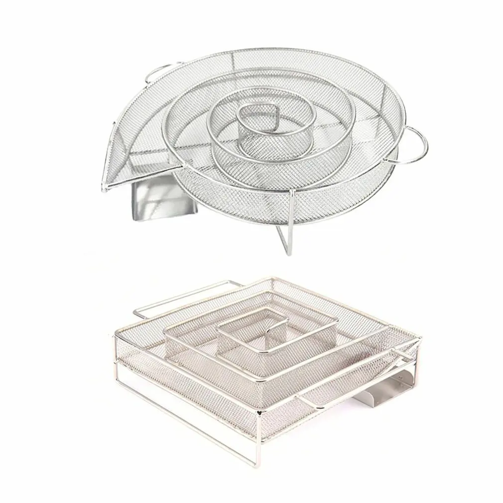 Описание: коврики для барбекю позволяют вашей пище иметь больше циркуляции воздуха, что делает ее дымчатой. Характеристики: Цвет: серебристый Тип: квадратный, Круглый (дополнительно) Размеры: 21x18x5 см, 15x19x4 см (дополнительно) материал: проволока из нержавеющей стали