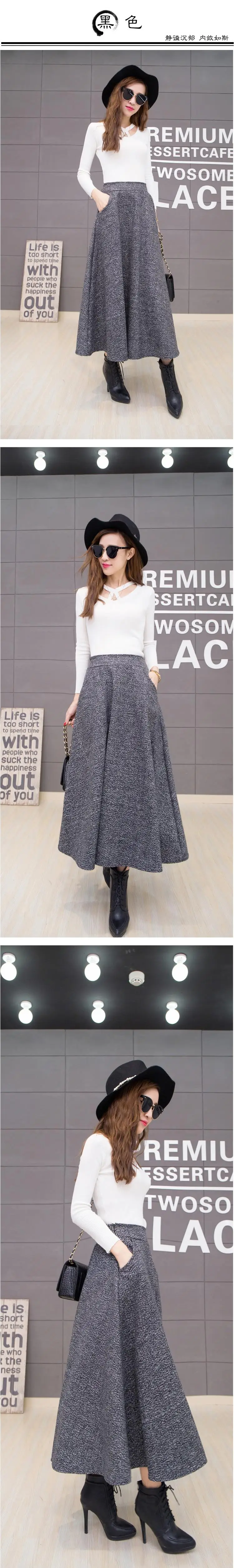 Зимние длинные юбки, Женская винтажная юбка с высокой талией черного цвета хаки, длинная юбка AF122