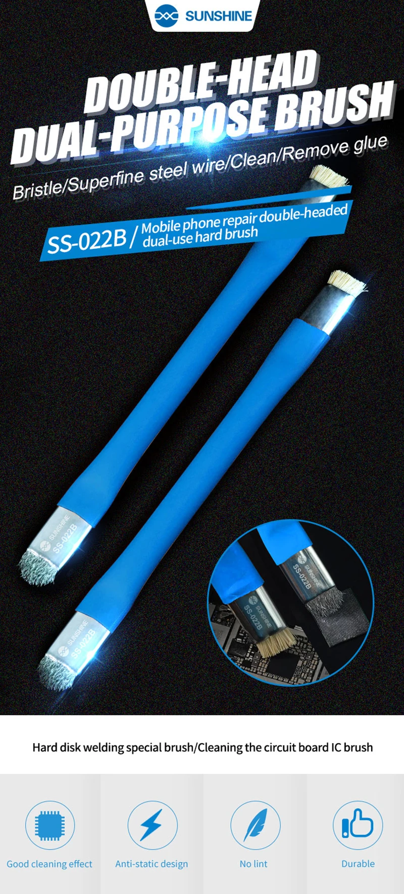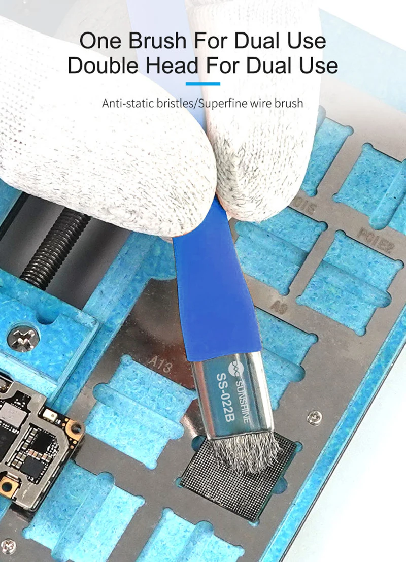 Антистатическая двухголовая щетка двойного назначения для iPhone Samsung IC Chip Motheraboard инструменты для удаления клея