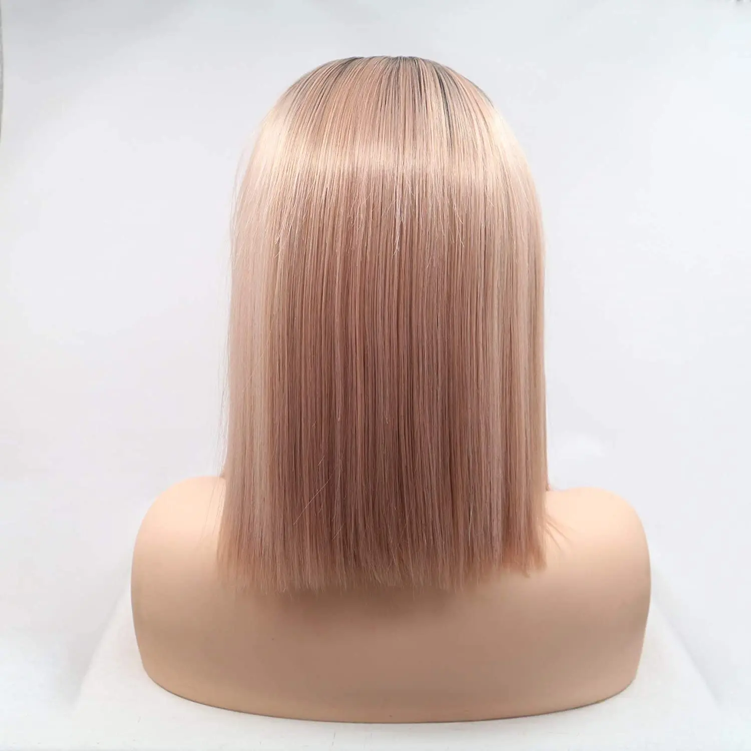 Парики для женщин из коротких блондинок, короткие прямые парики для волос с кружевами средней части, термостойкие розовые парики для косплея, вечерние Парики 14 дюймов