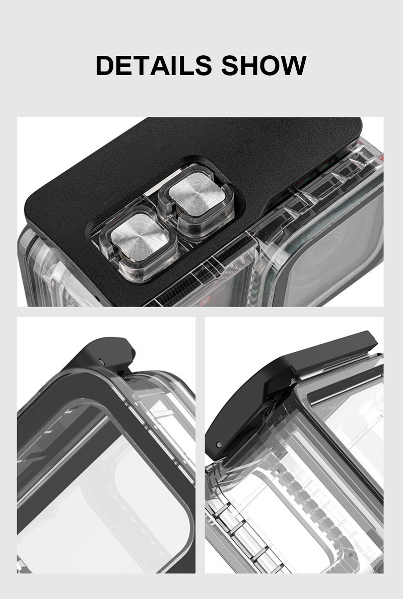 Особенности: 1. Глубина водонепроницаемости составляет 40 метров, и сопротивление давлению непроницаемо. 2. Корпус изготовлен из высокопрочного поликарбоната, который устойчив к коррозии. Композитный материал высокой плотности, защита от падения, Защита камеры Эластичный замок, легко разбирается. Высокий светильник-передающий материал корпуса, светильник с высоким коэффициентом пропускания может достигать 95%, не нужно беспокоиться о том, что светильник проблем во время съемки. Закаленный ПК прозрачный материал, с повышенным инвестиционным эффектом, устойчивый к царапинам, можно протереть мягкой тканью или бумажным полотенцем после загрязнения 5. Подходит для панорамной камеры Insta360 ONE R Спецификация: Материал: Поликарбонат Тип: водонепроницаемый чехол для камеры Водонепроницаемость: 40 метров Применимые модели: Insta360 ONE R Цвет: прозрачный Тип товара: водонепроницаемый чехол Вес изделия: 200 г Материал: Поликарбонат Материал ключа: высококачественная нержавеющая сталь 316 Тип товара: водонепроницаемый чехол Размер изделия: 83,2*82,4*47 мм Упаковочный лист: Водонепроницаемый корпус * 1 Винт * 1
