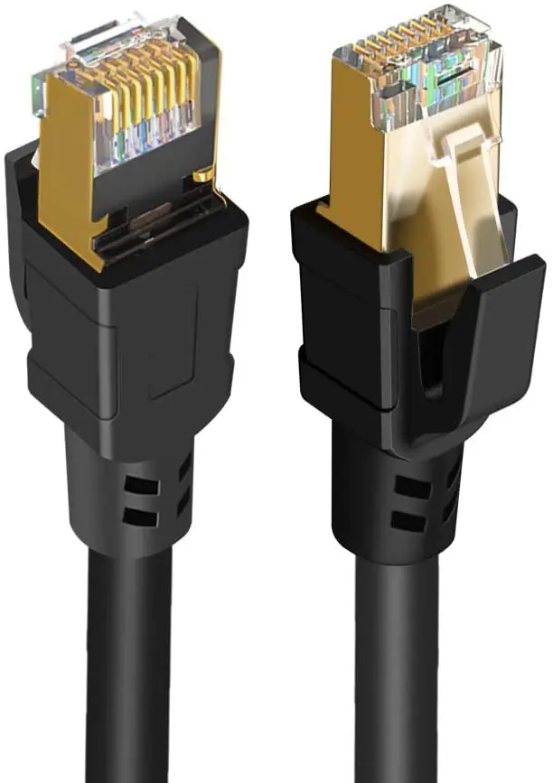 Отличная структура-24-каратная позолоченная вилка RJ45 устойчива к коррозии и окислению, кабель изготовлен из 4 витых пар проводников из голой меди (26AWG),OD: 6,0 мм. Черная наружная крышка из ПВХ делает ее прочной и гибкой. • Двойной экранированный-общий щит из алюминиевой фольги и плетеная Защитная структура позволяют cat8 Ethernet кабель с высокой защитой от помех и меньшим затуханием сигнала. Защита от помех EMI/RFI, улучшенное качество скручивания проводов обеспечивает лучшую защиту от помех, шума и помех, которые могут снизить качество сигнала. • Высокая скорость загрузки и загрузки-Удлинительный кабель Ethernet Cat 8 поддерживает пропускную способность до 2000 МГц и скорость передачи данных до 40 Гбит/с, подключи и играй для обмена файлами сервера, используйте сетевой принтер, потоковое аудио или видео и многое другое. • Совместимость и применение-идеально подходит для ПК, компьютерных серверов, концентраторов, маршрутизаторов, DSL, кабельных модемов, PS3, PS4, X-box, патч-панелей, NAS, voIP phonesи другие Высокопроизводительные сетевые приложения s. Полностью обратная совместимость с Cat7/6/6e/5/5e ethernet-устройствами.
