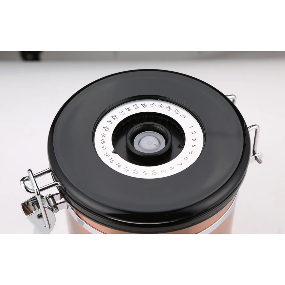 Внешний вид красивый и высококачественный Высокая герметичность, хорошее сохранение вкуса кофе Материал-нержавеющая сталь, износостойкость и длительный срок службы С циферблатом регулировки времени вы можете узнать время хранения и напомнить вам о времени хранения кофейных зерен Конструкция выхлопного отверстия: Установите одностороннюю проблему выхлопных газов, чтобы решить проблему долгосрочного хранения, свежести и питьяСпецификация: