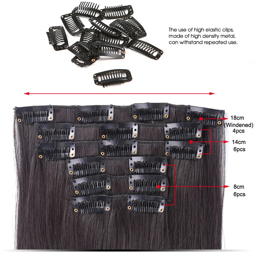 Материал: синтетический Волосы Размер: 22 дюйма, 6 шт./упак. Прическа: прямая, 16 зажимов для наращивания волос, для женщин, Повседневная посуда, свадьба, когда вам нужно Особенности: мягкие, гладкие, натуральные и дышащие, термостойкие, не более 150 градусов, Цвет: чистый/цвет Омбре Чистый уход: Стирайте с добавлением кондиционера для волос в теплую воду, дайте высохнуть и храните. Не вытягивайте слишком сильно. Примечание: 1. Наш продукт высокого качества. Его можно использовать повторно, и конкретный срок службы тесно связан с осторожностью использования и условиями использования. 2. Из-за разницы в отображении и ручных измерениях цвет и размер товаров будут зависеть от фактического получения.