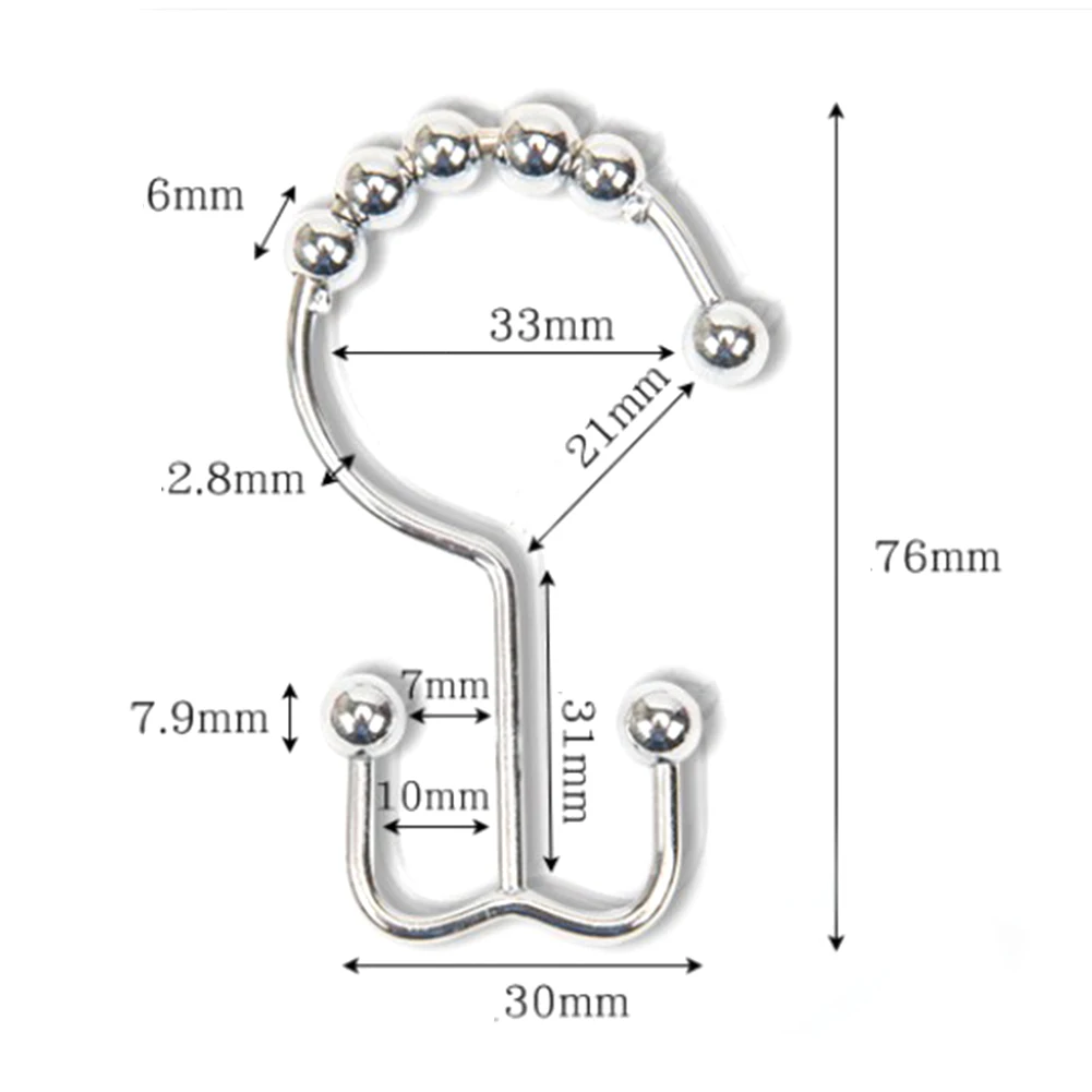 3.Плавное скольжение:Наслаждайтесь легким скольжением по стержню для душа. Пять роликовых шариков в верхней части каждого крючка позволяют более плавно скользить, пока вы тяните штору или подкладку через стержень.