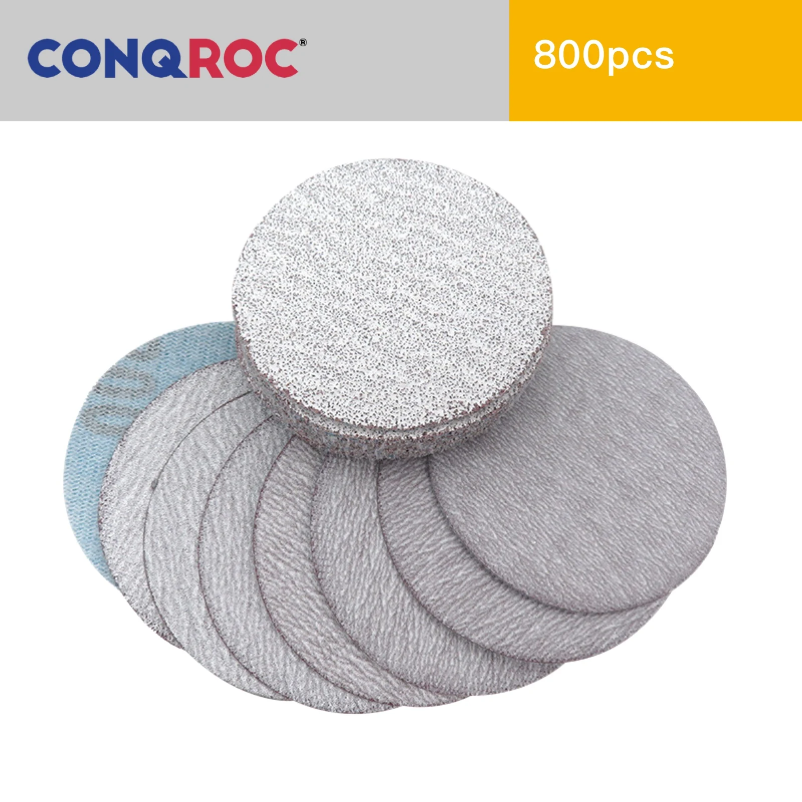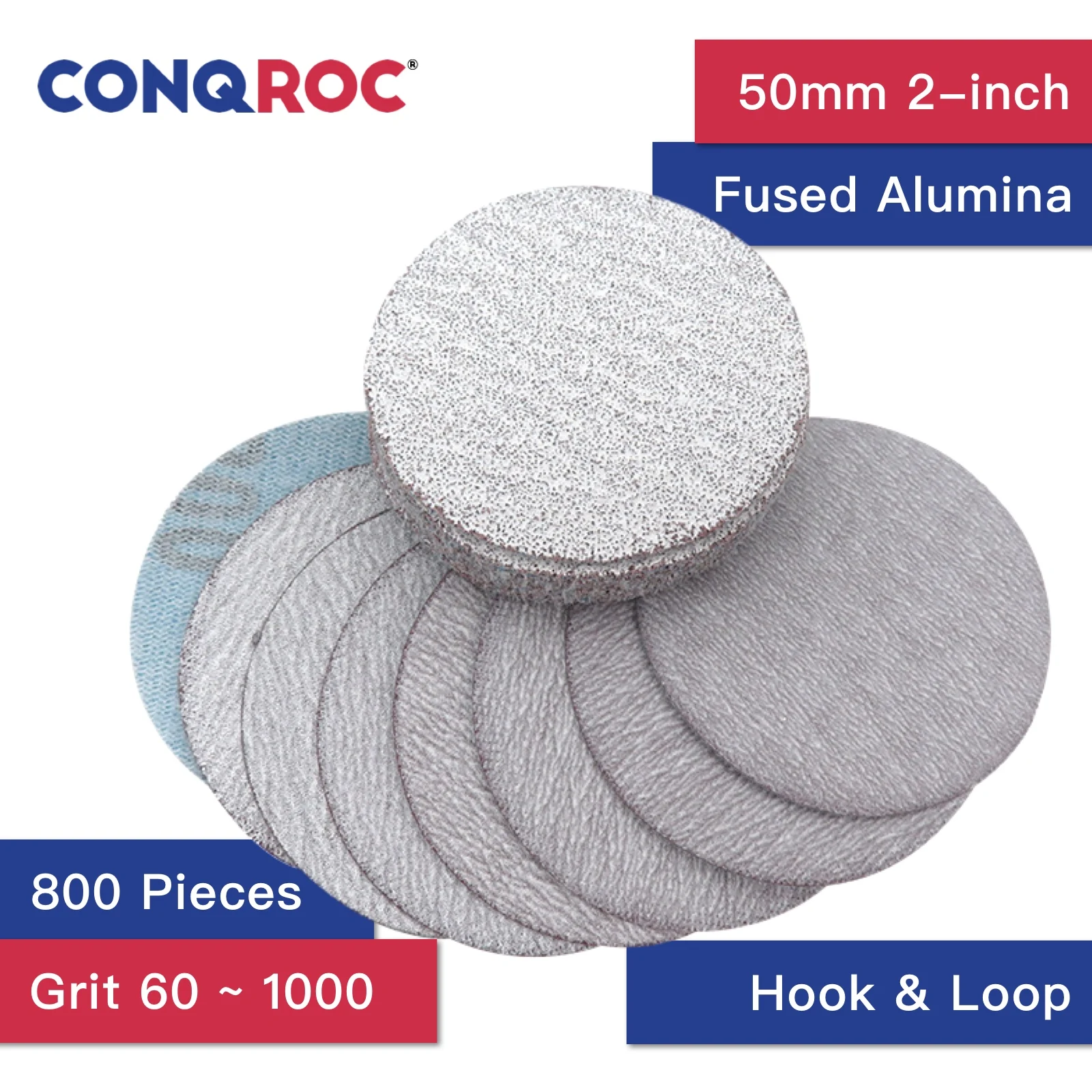 800 шт. 50 мм 2-дюймовый Белый сухой шлифовальные диски Крюк и петля Флокирование карбид кремния Бумага диски