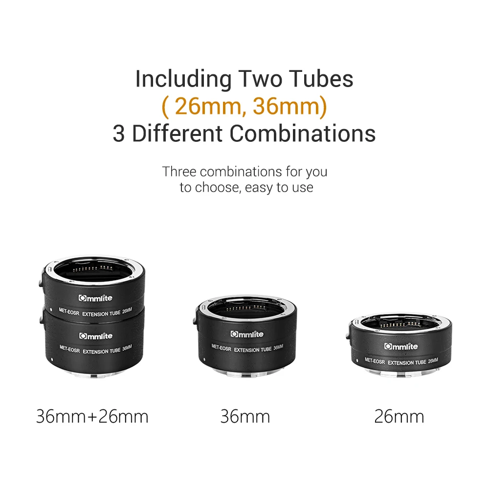 2. Расстояние фокусировки ограничено После установки удлинительной трубки, И диапазон фокусировки отличается с разным фокусным расстоянием s, поэтому вы можете регулировать фокусное расстояние, изменяя расстояние между объектом и камерой или управляя устройством масштабирования основного объектива.