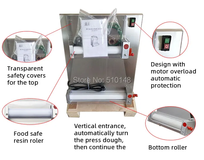 1. Подходит для завальцовки теста для пиццы и хлеба. 2. Размер пиццы: диаметр 100 ~ 400 мм, максимум 15 ”пиццы. Открытие ролик от 0,5 мм до 5,5 мм Макс. 3. Машина работает для теста с коэффициентом смешивания воды и муки около 1:2. 4. Вертикальный вход, Автоматически поворачивает пресс-тесто, затем продолжает второй. Процесса прокатки. 5. Полностью изготовлен из современной нержавеющей стали. Безопасные для пищевых продуктов резиновые ролики. 6. Прозрачные защитные чехлы для верхних и нижних роликов. 7. Не напряжение высвобождения электрической безопасности операции. 8. Конструкция с автоматической защитой от перегрузки двигателя. 9. Деревянный чехол с быстросъемным дизайном. 10.CE и ROHS Сертификация по заводу с декларированием соответствия и сертификации самоутверждения.